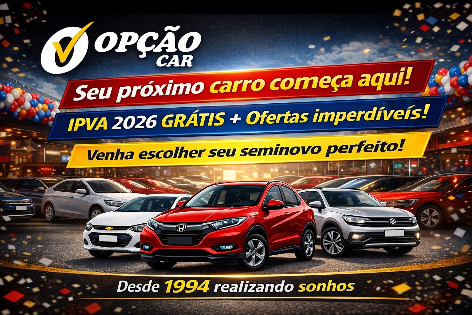 Quero deixar registrado meu profundo agradecimento e reconhecimento a toda a equipe da **Opção Car**, que proporcionou um atendimento exemplar desde o primeiro contato até a conclusão da compra. Os vendedores Hugo que demonstrou profissionalismo, atenção e gentileza em cada detalhe, sempre dispostos a esclarecer dúvidas e oferecer o melhor suporte possível. A dedicação deles fez toda a diferença para que a experiência fosse tranquila, segura e satisfatória.